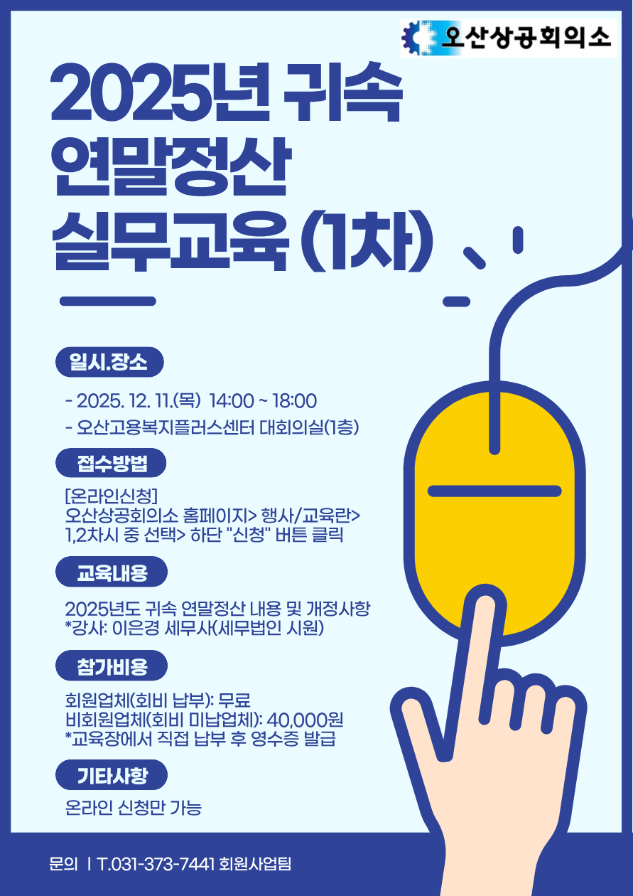 | ‒ | (1차) [12/11(목)] 2025년 귀속 연말정산 실무교육 개최 |