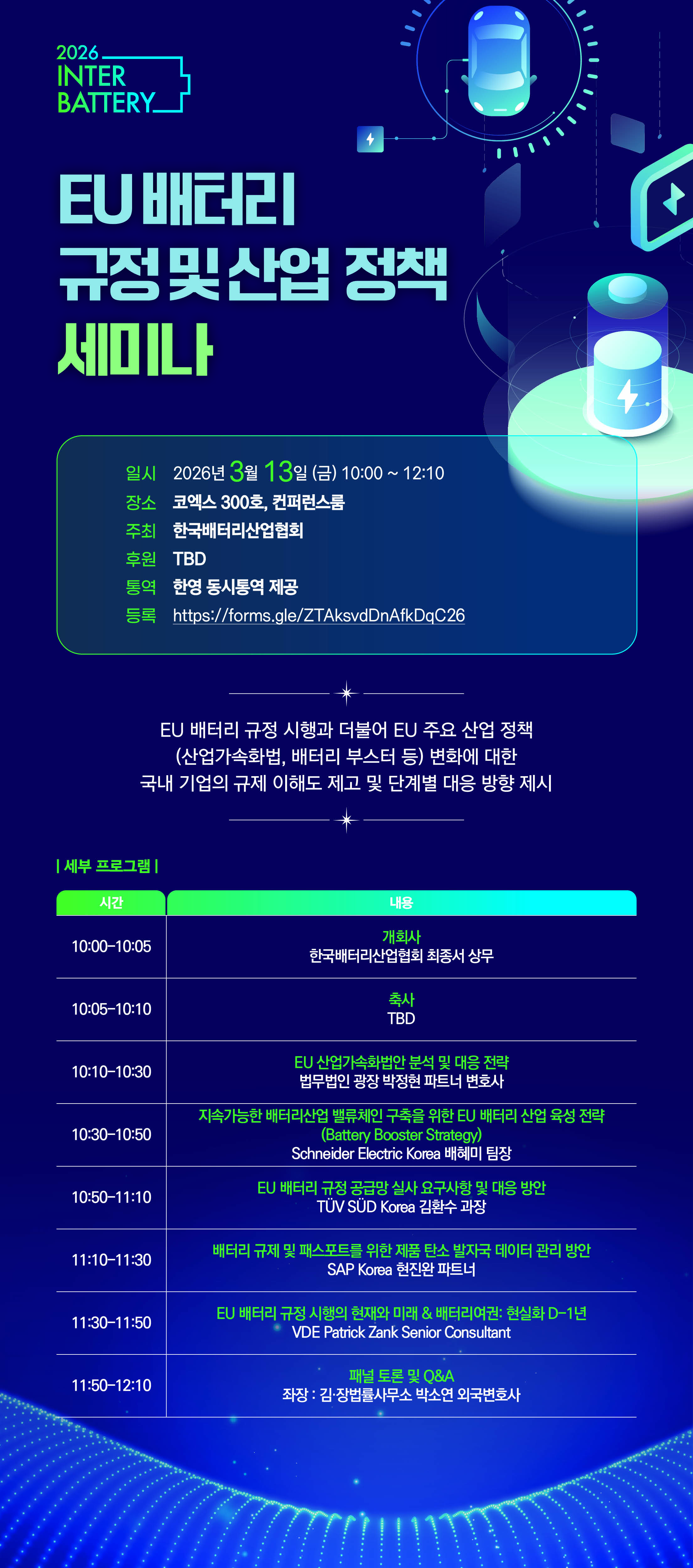 | ‒ | EU 배터리 규정 및 산업 정책 세미나 |