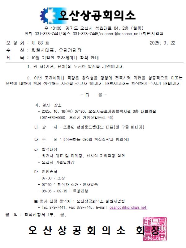 대표전화 : Tel : 031-373-7441 문의 : osancci@korcham.net