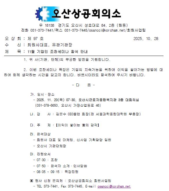 대표전화 : Tel : 031-373-7441 문의 : osancci@korcham.net